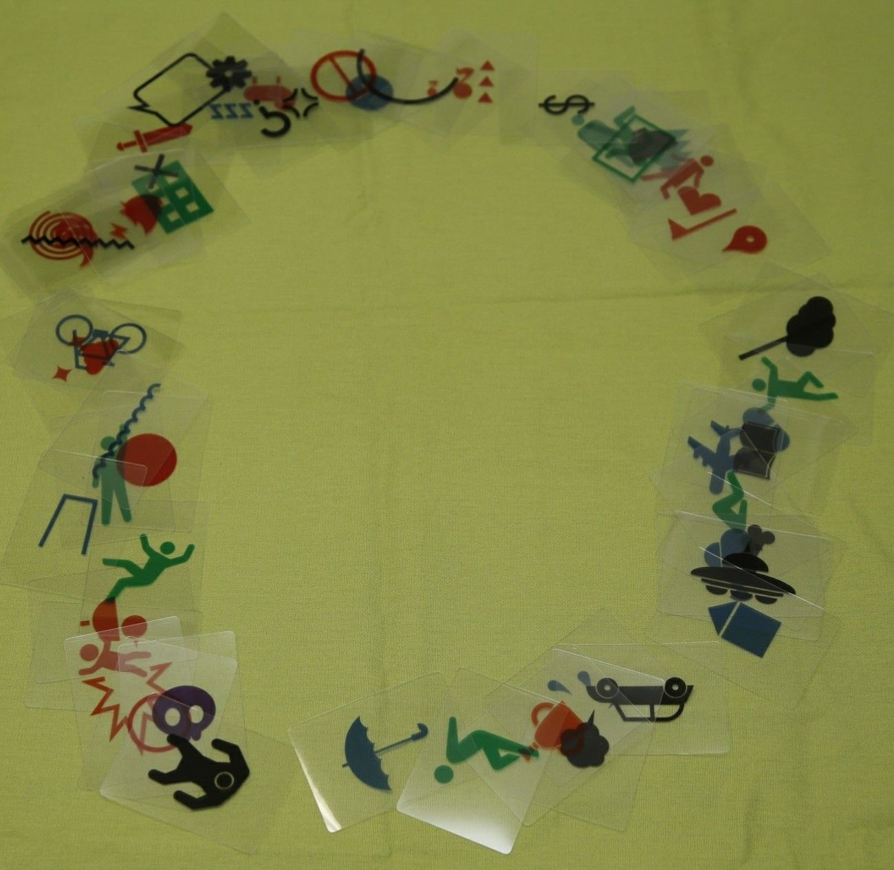 ピクトグラムが描かれたクリアカードを自由に重ねあわせ、他の人に自分が体験した楽しいこと・悲しいことや、自分が知ってる映画・スポーツなどのお題を伝えるコミュニケーションゲームです。